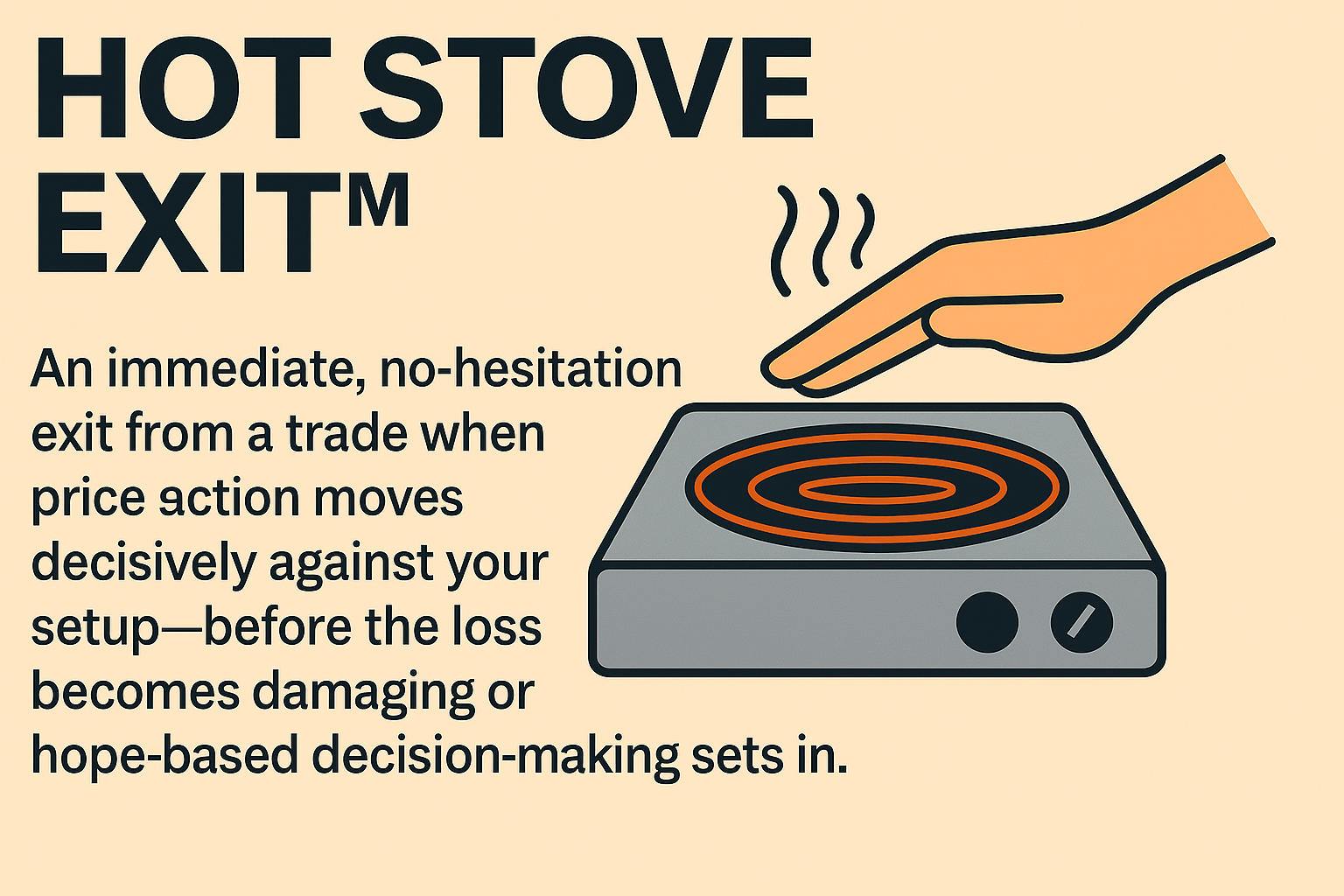 A Hot Stove Exit™ is an immediate, no-hesitation exit when a trade starts to go wrong—before the damage becomes emotional, financial, or existential. It’s not a panic move. It’s a power move. It’s instinct honed by discipline.